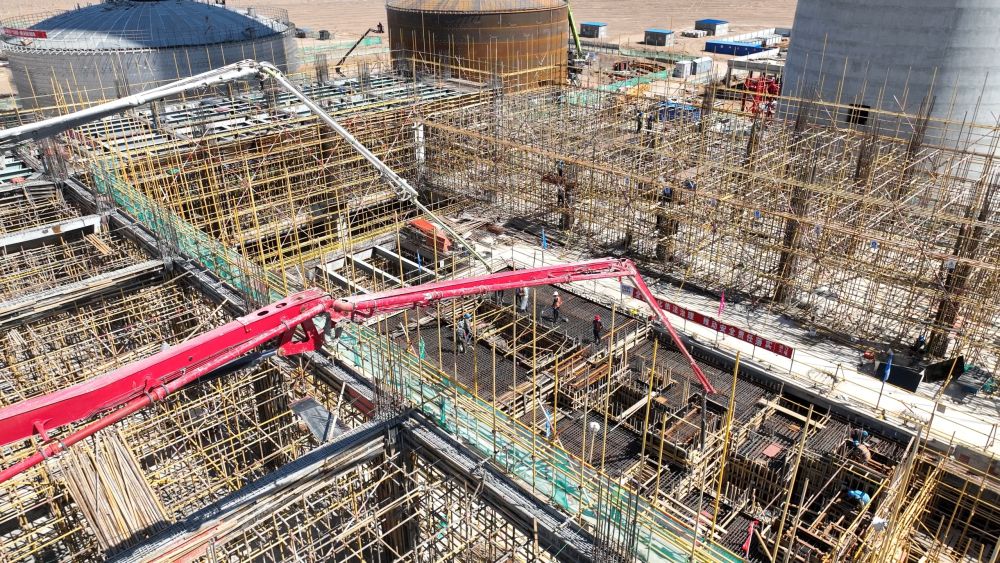 記者采訪獲悉,該項目由中國能源建設(shè)集團投資有限公司投資建設(shè),于2024年5月開工,計劃2027年6月完工。本次澆筑的汽輪機基礎(chǔ)是光熱電站核心結(jié)構(gòu),投運后需承載數(shù)千噸設(shè)備重量及高頻振動荷載。本次澆筑混凝土方量600立方米,屬于大體積混凝土澆筑,基礎(chǔ)需嵌入大量預埋件、螺栓孔,施工精度直接影響設(shè)備安裝定位,施工已于7月16日完成。項目地處哈密市巴里坤哈薩克自治縣的一處戈壁上,建設(shè)環(huán)境惡劣,氣候變化大,交通不便,生產(chǎn)生活物資供給困難,年施工窗口期僅7個月。經(jīng)過克服風沙侵襲、嚴寒酷暑等多重考驗,歷時數(shù)月的精細籌備,目前施工正按計劃穩(wěn)步推進,整體工程有序鋪開。